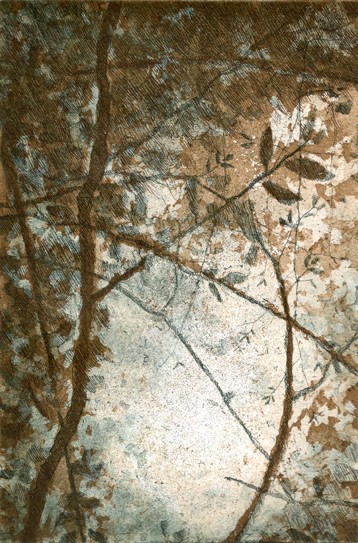 An original two plate intaglio print, capturing the light filtering through the treetops. This print was selected for the Limerick Printmakers Open Submission Print Show 2011.